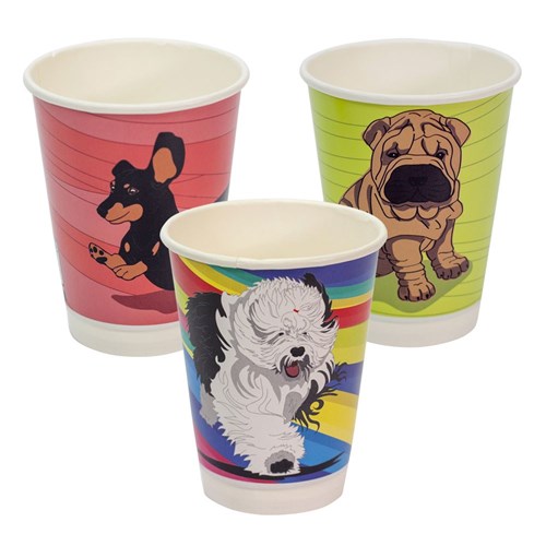 Paper Coffee Cup Compostable Aqueous Lined Double Wall Dog Series 12 oz