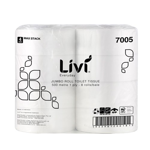 Toilet Tissue Basics 1 Ply Roll Basics Jumbo White 500m